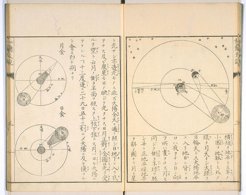 今回のミニ展観では、アポロ計画終了から、50年を迎えることを記念して、天文に関する古典籍を展示します。