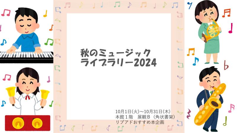 本館1階おすすめ本コーナー、10月のおすすめ本のテーマも「秋のミュージックライブラリー2024」です。近頃、温度が下がっていよいよ秋らしくなってきましたね。今回も音楽にまつわるような本を選書してきましたが、9月のおすすめ本とはまた違った本となっています。先月のおすすめ本につながるような本から、ボーカロイド、J-POPまで、様々なジャンルの音楽にまつわる本を選書してみました。先月に続き音楽について深く学んでいきましょう。