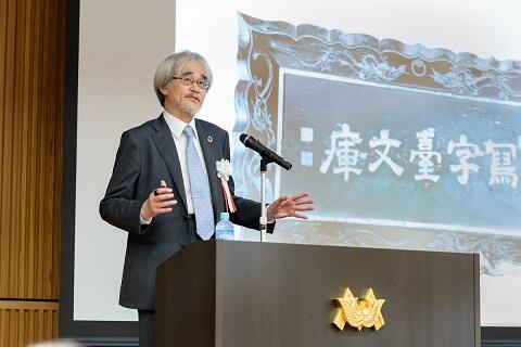 大会初日の8月30日には、入澤学長による記念講演「龍谷の至宝」が行われました。講演は本学の教学の歴史を俯瞰されたもので、写字台文庫や大谷探検隊のことも含め、詳細な内容でした。参加者からは、「あらためて龍谷大学の歴史的蓄積の豊富さを知ることとなり、感動しました。」などの感想も頂戴し、充実した講演会となりました。また講演に併せて、本館では「図書館の至宝」と題した特別展観も実施され、「李柏尺牘稿」(重要文化財)をはじめとした貴重資料などが展示されました。