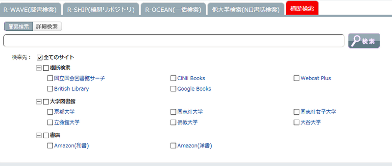 - [横断検索]と直接検索先で検索した結果が異なる場合があります。[横断検索]は、自分が探している資料がどのサイトで探せば良いのかの目安にお使いください。