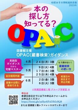 または、直接レファレンスカウンターでお申込みください。OPACガイダンス開催のお知らせ
