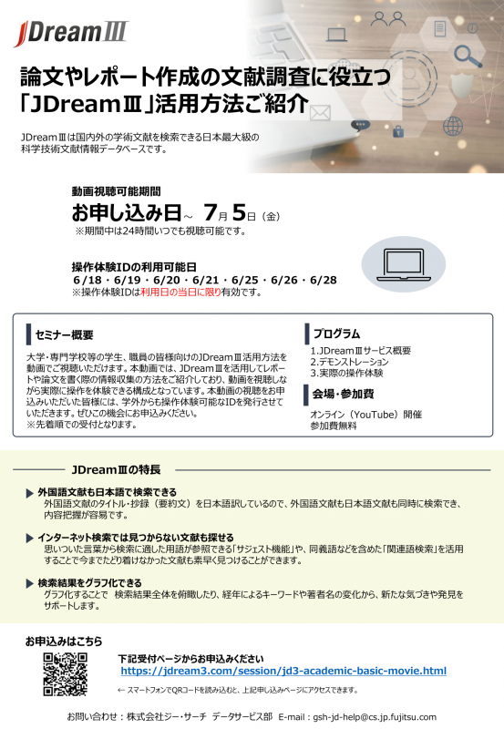 「論文やレポート作成の文献調査に役立つJDreamⅢ活用方法ご紹介動画」が
