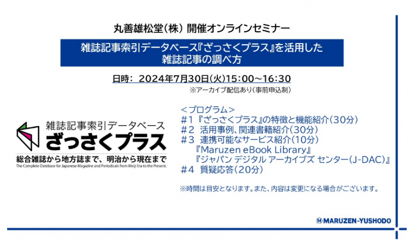 「雑誌記事索引データベース『ざっさくプラス』を活用した雑誌記事の調べ方」が