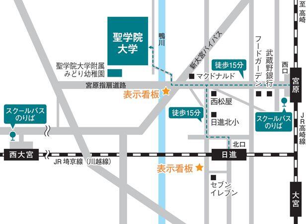 聖学院大学総合図書館の最寄り駅は、JR高崎線の宮原駅/JR埼京線(川越線)の日進駅です。