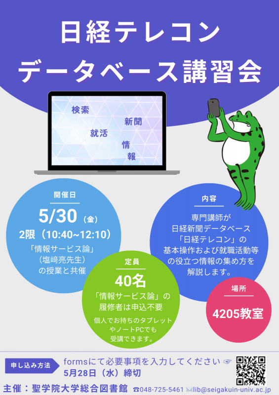 5月30日(金)2限 日経テレコンデータベース講習会のご案内