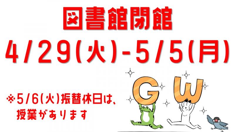 なお、5/6(火)は振替休日ですが授業がありますので、図書館は通常開館となります。