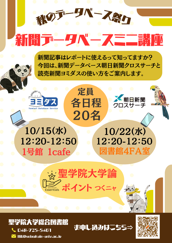 秋の新聞データベース祭およびミニ講座(聖学院大学論活動ポイント対象)開催のご案内