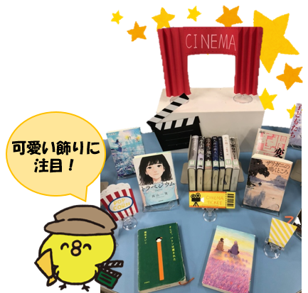 現在、図書館3階ミニ展示コーナーでは、「学生アルバイトがススめる映画化原作本」を展示しています。