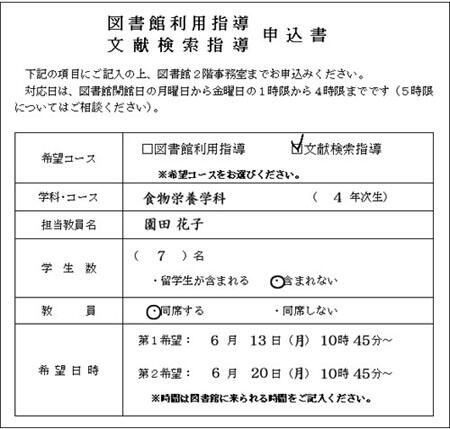 図書館利用指導・文献検索指導申込書