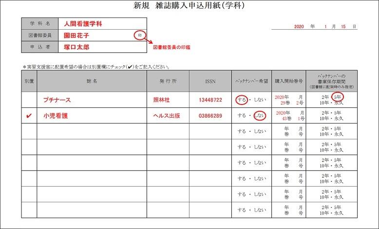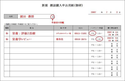 新規 雑誌購入申込用紙(学科)