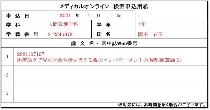 メディカルオンライン検索申込用紙