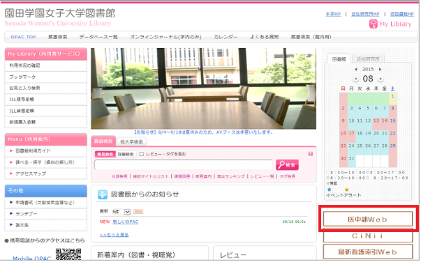 ① 図書館のホームページを開いて、【医中誌Web】のバナーをクリックしてください。