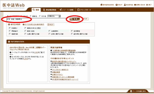 ② 欲しい資料に関連するキーワードを入力して、【検索】をクリックします。