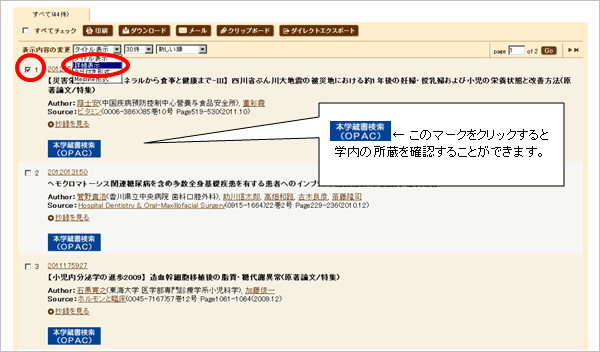 たくさん結果が表示された場合は、見たい資料だけチェックして【詳細表示】をクリックすると