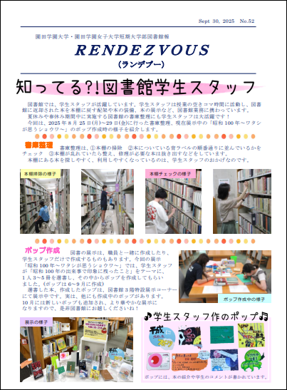 図書館報「RENDEZVOUS」(ランデブー)第52号を発行いたしました。