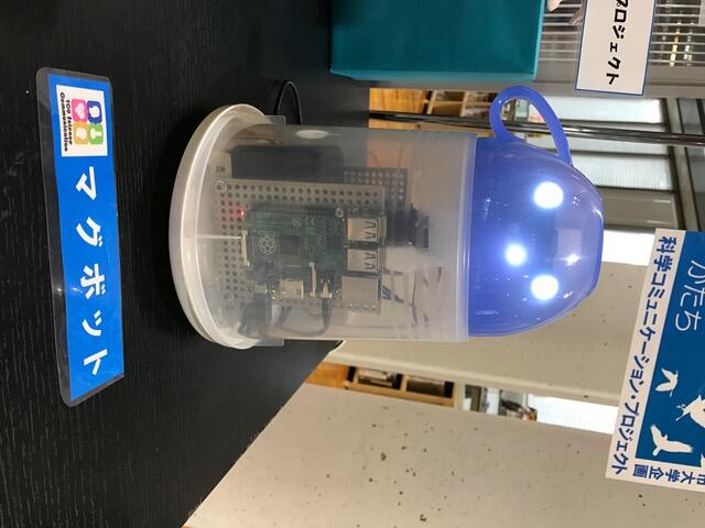 | | 展示の説明は、 おしゃべりロボット "マグボット" が手伝って、時々しゃべります。 |