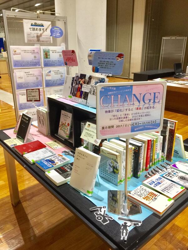世田谷キャンパス図書館では、2017年11月13日(月)から12月21日(火)まで1階 TOSHOKAN Galleryにて展示企画「CHANGE~物事が変化すると革命が起きる」を実施中!一昨年より実施している「動詞」から発想の種を見つけるシリーズ展示企画「動詞シリーズ」の第3弾目となります。