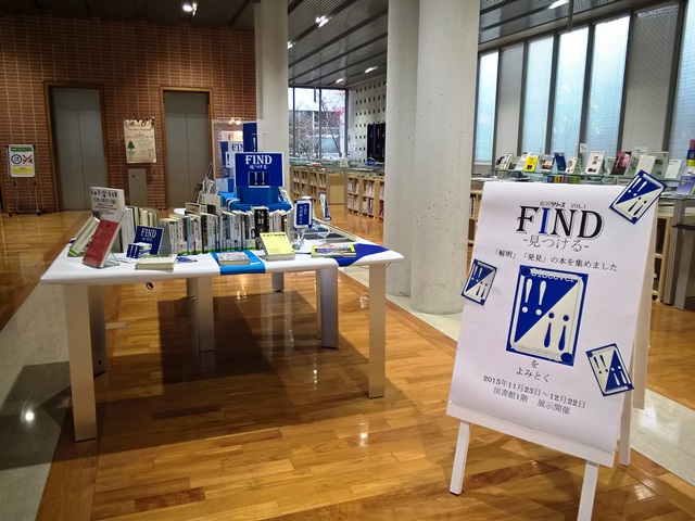 一覧へ 【終了しました】SC展示「FIND~見つける」~「!!」をよみとく 投稿日時: 2015/12/17 世田谷 世田谷キャンパス図書館では、10月31日から12月23日まで1階 TOSHOKAN Galleryにて展示企画「FIND~見つける」を実施しています。先月から始まっているこの展示はもうチェックしましたか?この企画はさまざまな「動詞」から発想の種を見つけるシリーズ展示「動詞シリーズ」の第一弾です。前半の『「?」をひもとく』に続く、11月23日からの『「!!」をよみとく』では、「解明!・ひらめいた!」の本を集めました。「なぞ」をひもとき、「発見」をよみとこう。