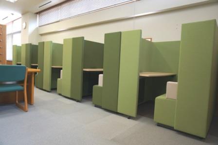 一覧へ YC 2階閲覧席リニューアルしました。 投稿日時: 2016/09/03 横浜 横浜キャンパス図書館では、2階の閲覧席の一部をリニューアルし、個人集中ブースを9台設置しました。集中して勉強したい時等にご利用ください。 <右側に4台> <左側に5台> <中はゆったり>