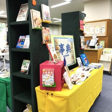 横浜キャンパス図書館では、1階入口正面の展示コーナーにて「事典」をテーマにした展示を開催中です。「英和大事典」から「色の名前事典」や「お仕事のコツ事典」など、様々な種類の事典を取り揃えて展示中です。是非ご利用下さい。