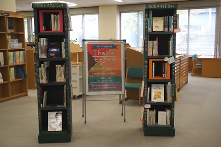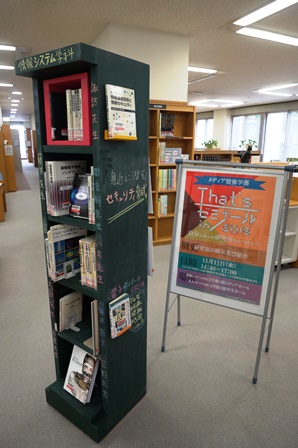 図書館ではこれに関連し、情報システム学科・社会メディア学科それぞれの先生の