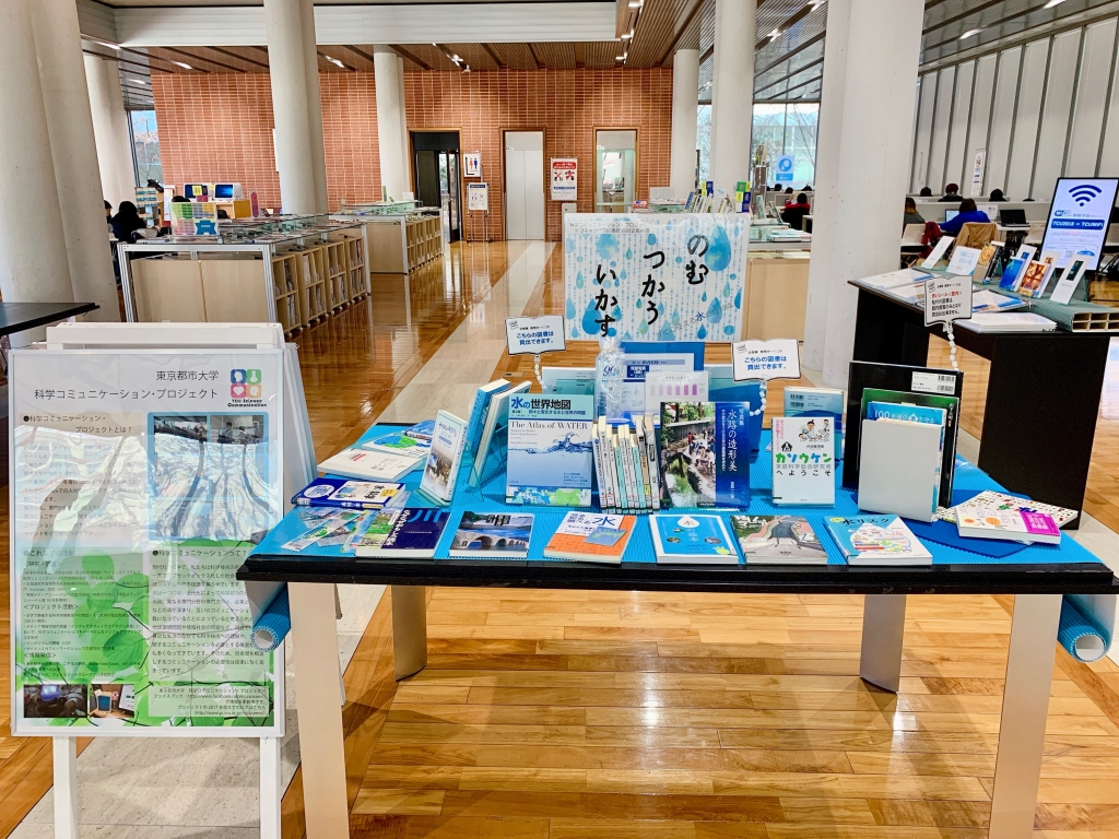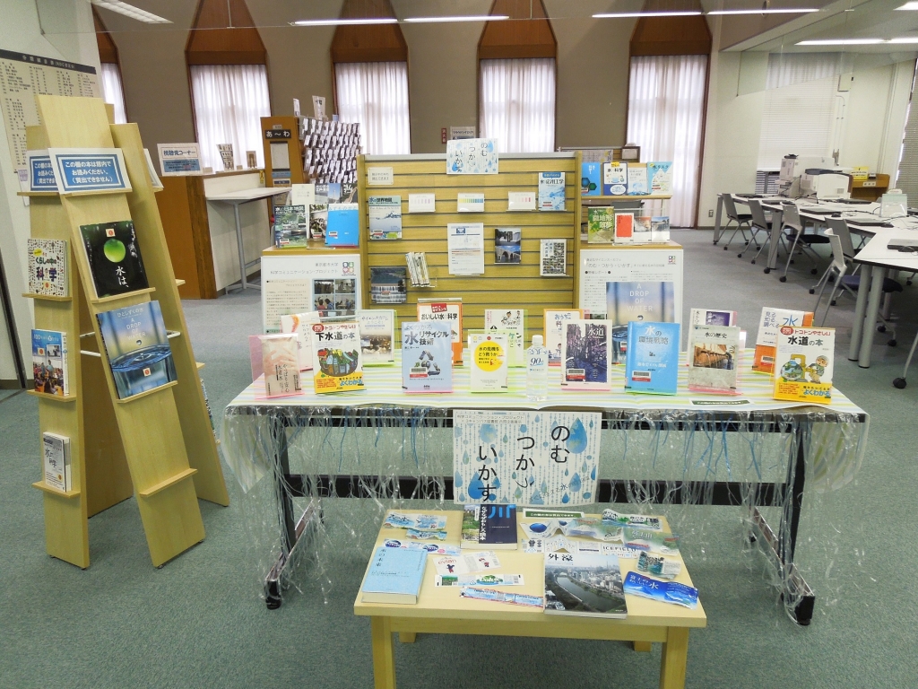 「水」に関する本の展示を図書館1階で行っています。