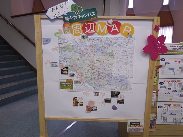 なお、「学科紹介」「館内の案内」「等々力キャンパス周辺MAP」も展示していました。