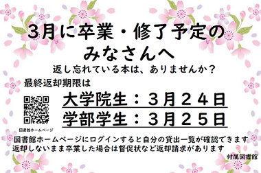 ※ただし、今年度退職予定の教職員、卒業/修了予定の学生・大学院生は、在籍中に返却を