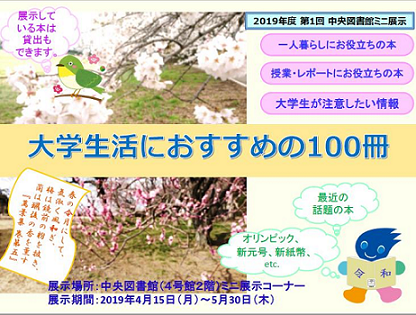 今回は、学生の皆さんの大学生活の充実に役立つ本、時代の変わり目にあたって話題の本などを