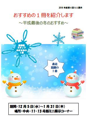 平成最後の冬のおすすめの1冊をテーマに、図書館スタッフ(職員・学生)の