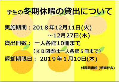 学生を対象として、春期休暇貸出を以下のとおり、実施します。
