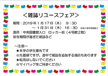 そのため下記の通り、新着雑誌の利用について注意が必要となりますので、お知らせいたします。