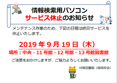 蔵書検索システムサービス一時停止について(9/18)