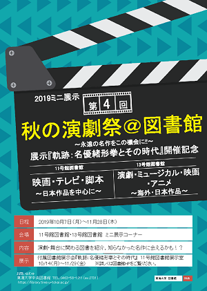 2019年秋の付属図書館展示会は「軌跡-名優緒形拳とその時代」を開催します。