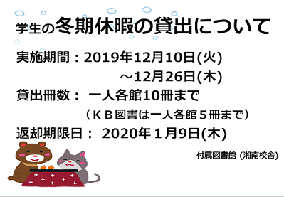 【湘南】冬期休暇貸出について(学生)