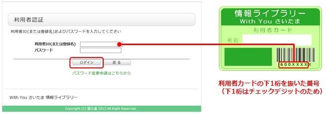 初期パスワードは、情報ライブラリーカウンターで発行しています。
